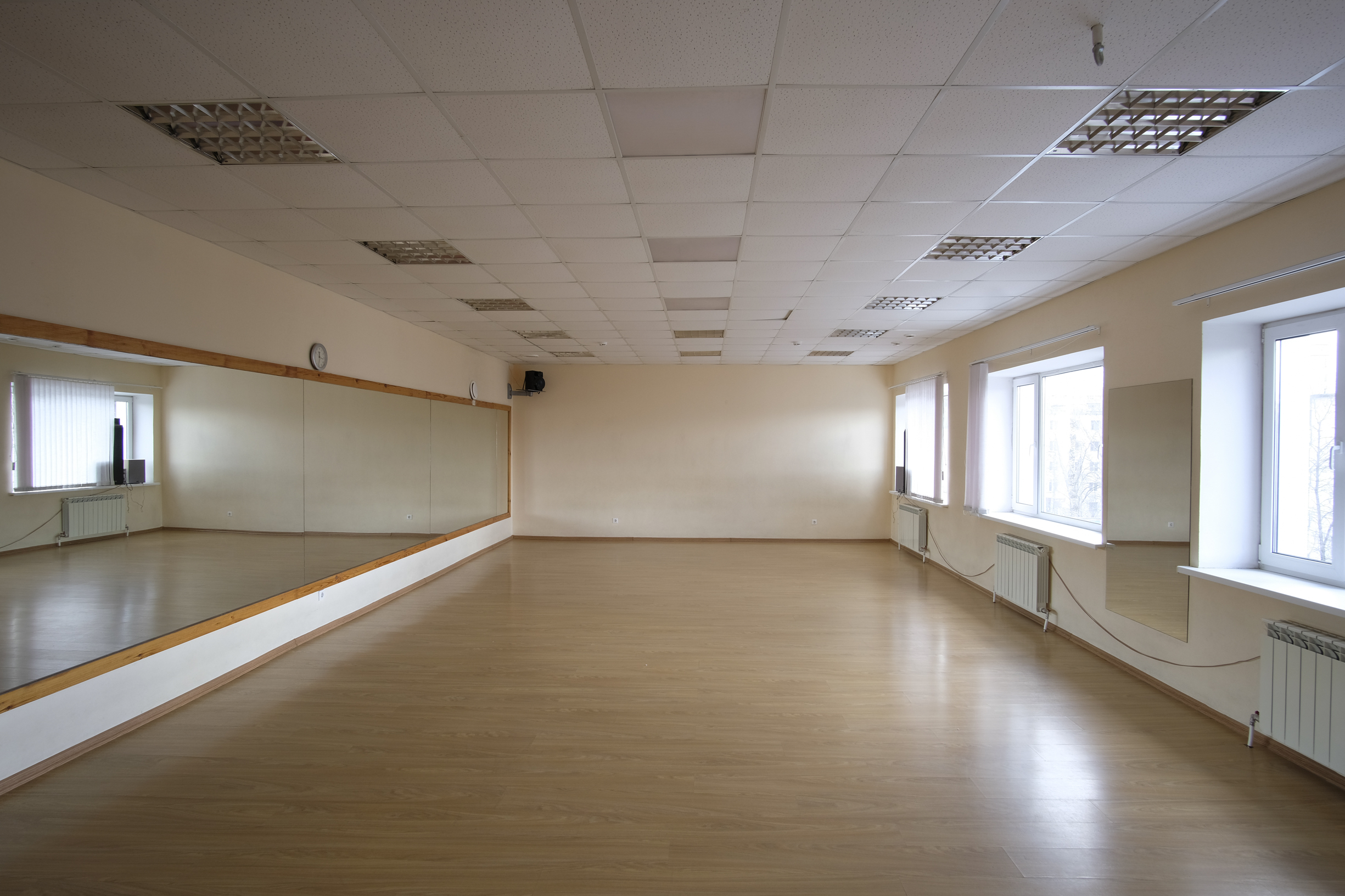 A dance class should never take place on a concrete floor or flooring laid over a concrete sub floor. This is dangerous for a dancer’s joints when they jump and land…which happens a lot in a dance class. The ideal flooring for a dance studio is a sprung floor. This specially made dance floor allows some motion in the flooring to protect and cushion a dancer’s joints as she lands from a jump. The sprung floor can be covered with wood or vinyl dance flooring. (Ideal for many types of dance such as ballet and modern.)